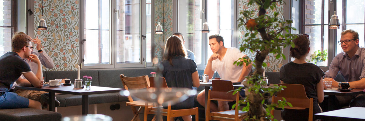 Einer der Klassiker des industriellen Ziegelbaus der 20er Jahre wird zum Kaffeehausrestaurant. Im ehemaligen Wartengebäude, dem historischesn Kontrollraum des Umspannwerkes, eröffnet das Kaffeehaus Schuchmanns. Planung von Gastraum, Küche, Tresen und Nebenräumen. Inklusive feste Einbauten, Möblierung. Kunstobjekte und medialem Erscheinungsbild.