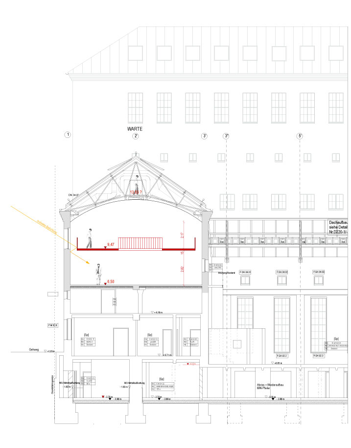 Das ehemalige Wartengebäude ist der historische Kontrollraum des Umspannwerkes. Ein Klassiker des industriellen Ziegelbaus der 20er Jahre. Das unter Denkmalschutz stehende Gebäude wurde in den 20 Jahren von H.H. Müller entworfen. Sanierung des Daches, Machbarkeitsstudie zur Nutzung. Zusammenarbeit mit der Denkmalschutzbehörde. Bau eines transluzenten Daches. Die transluzente Wärmedämmung des Daches erzeugt eine gleichmäßige Tagesausleuchtung in Museumslichtqualität. Sanierung: Arge Blum Guschlbauer, Machbarkeitsstudie: Wolf.Blum
