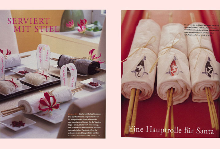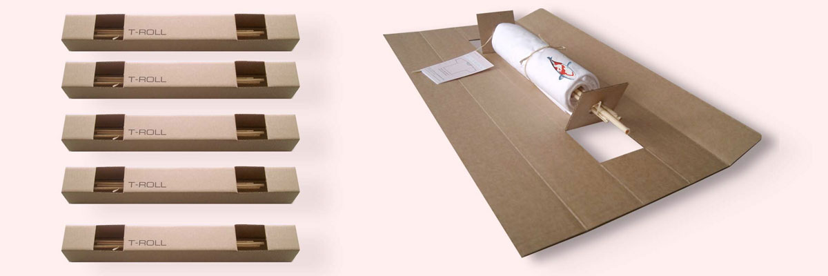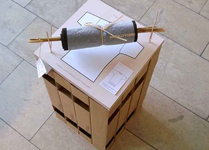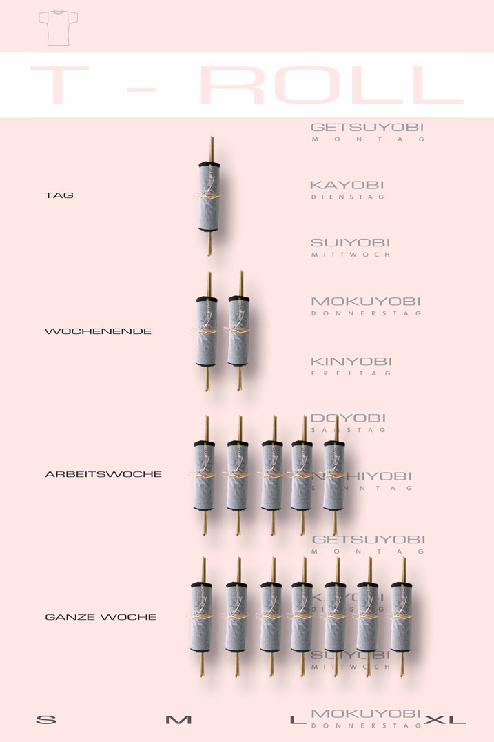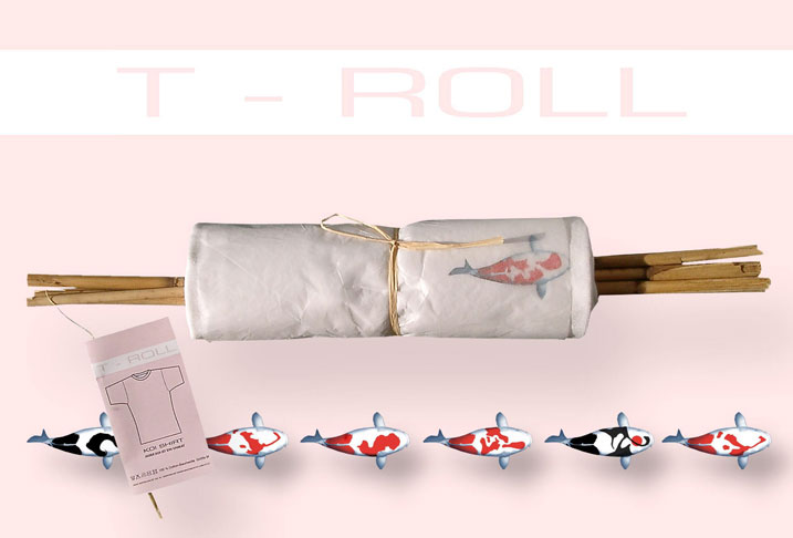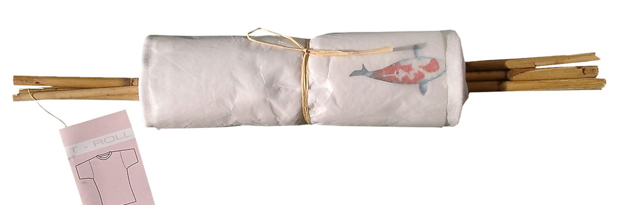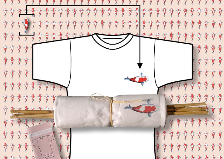 T-Shirt Produkt-Präsentation und Versandverpackung. Sushi zum Anziehen.