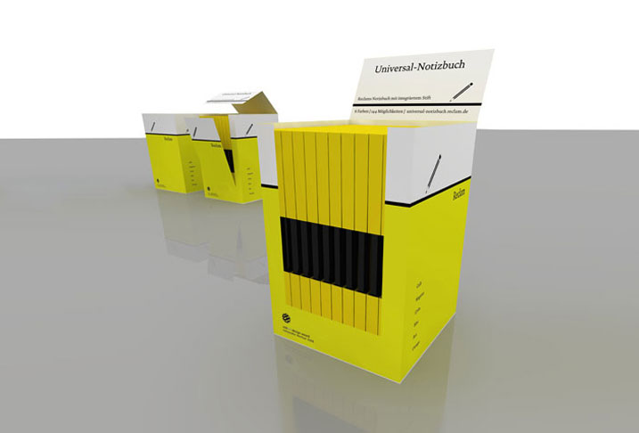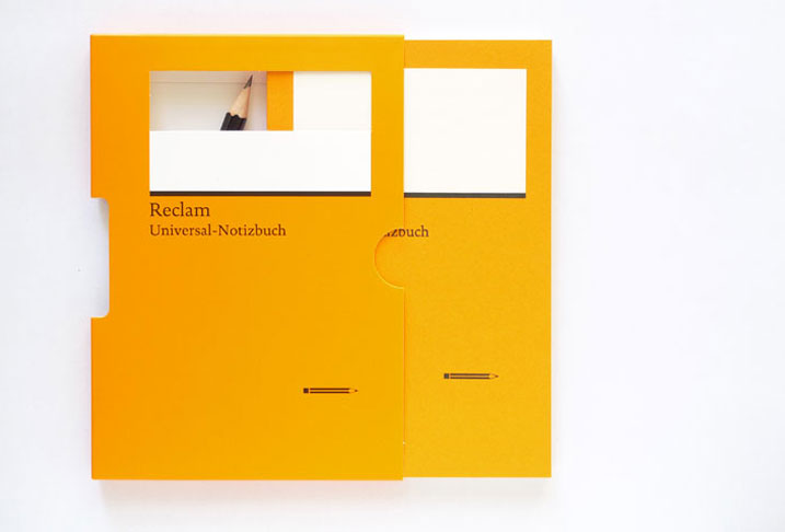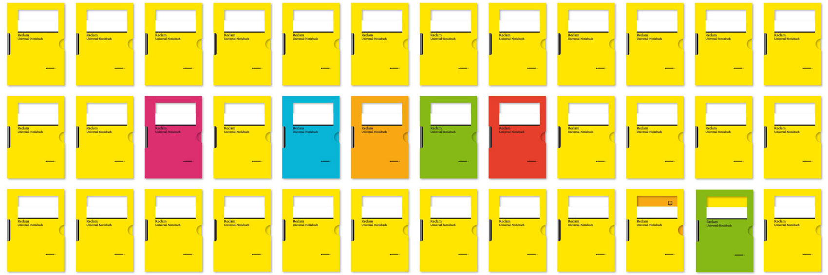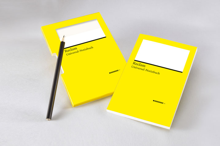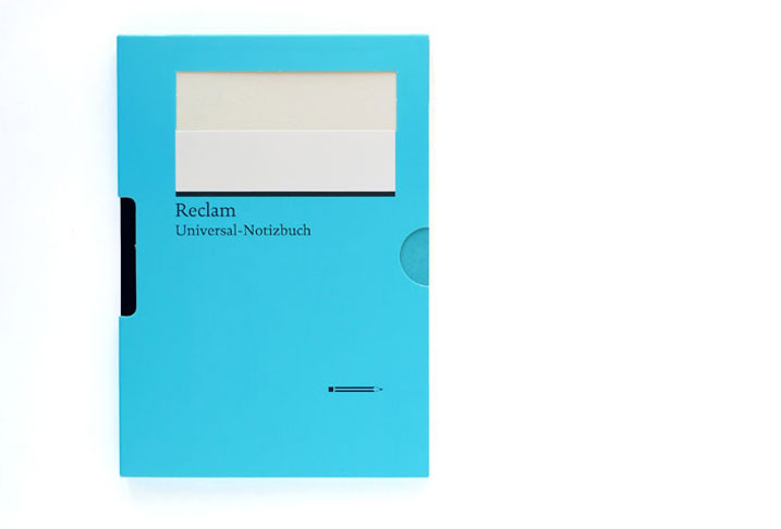 Das Universal-Notizbuch ist von Wolf.Blum 2008 für den Philipp Reclam jun. Verlag entwickelt worden. Das kleine Notizbuch mit Stift hat sich innerhalb des Verlages der Klassiker schnell selbst zum Klassiker entwickelt. Ein Verlagsnotizbuch an der Schnittstelle von Leser- und Autorenschaft. Universal einsetzbar für alle, die nicht nur lesen.